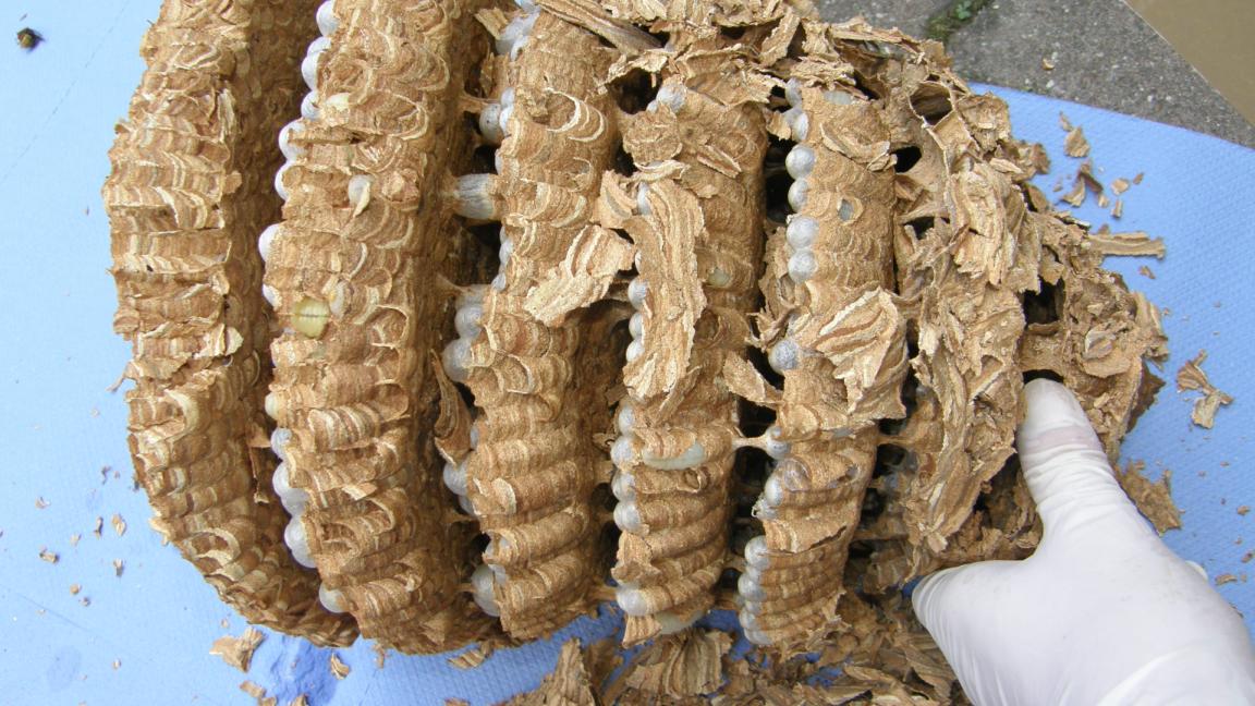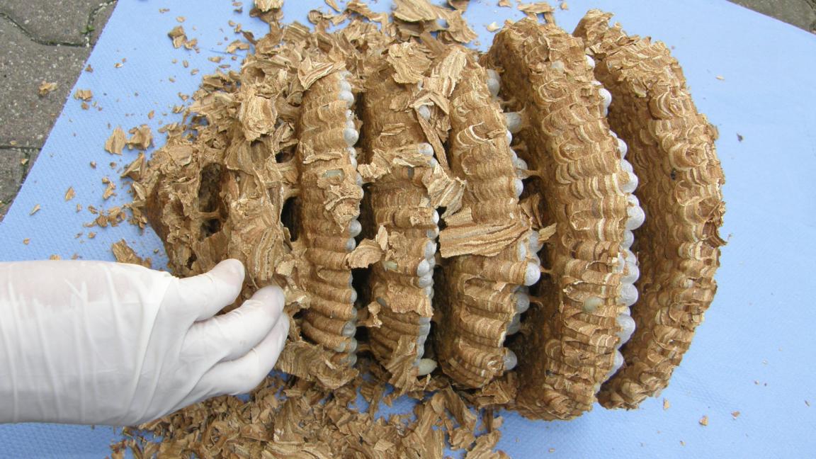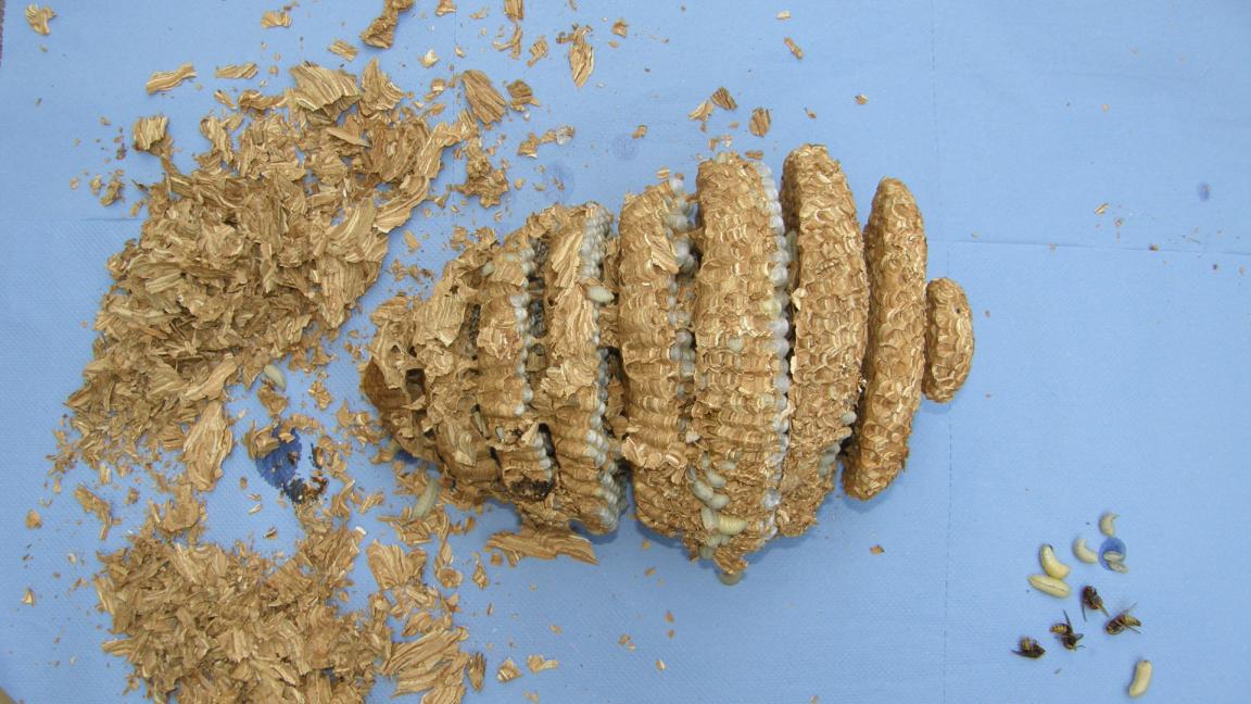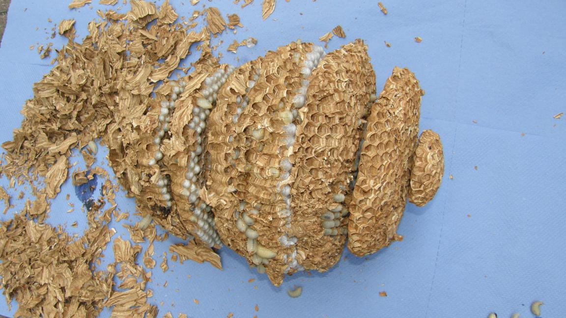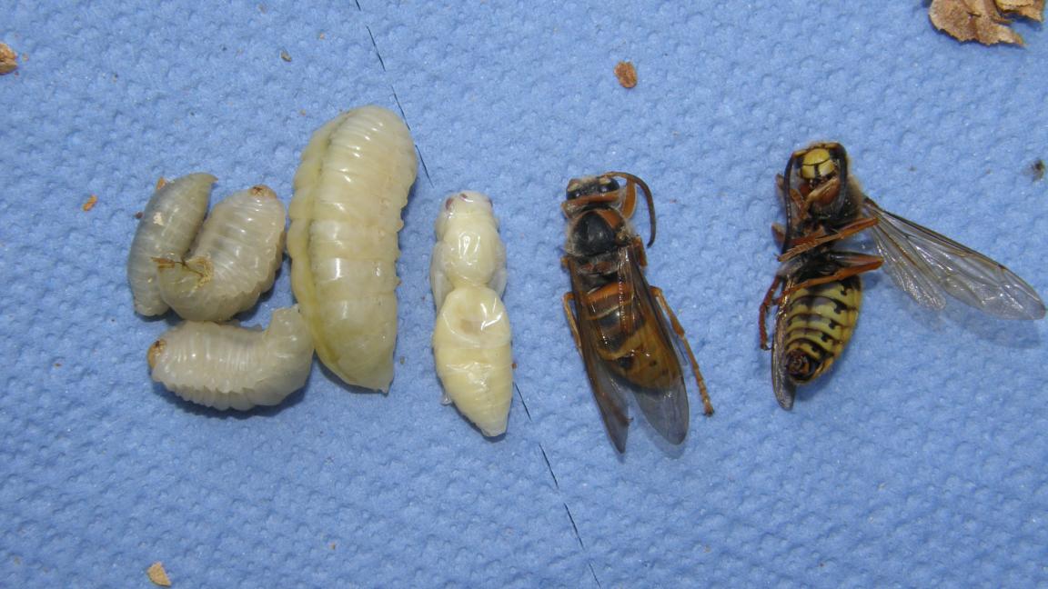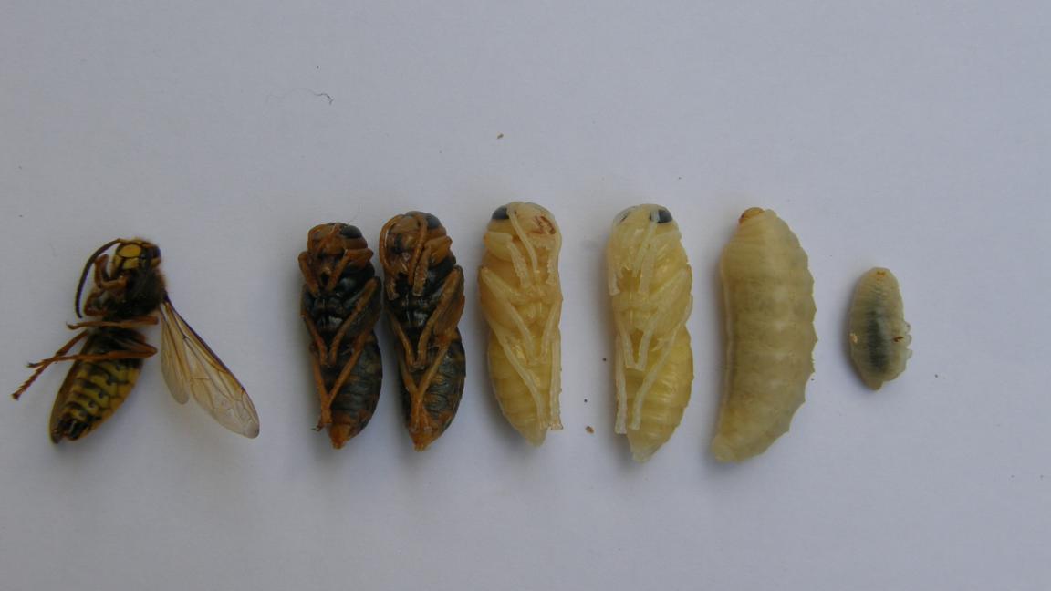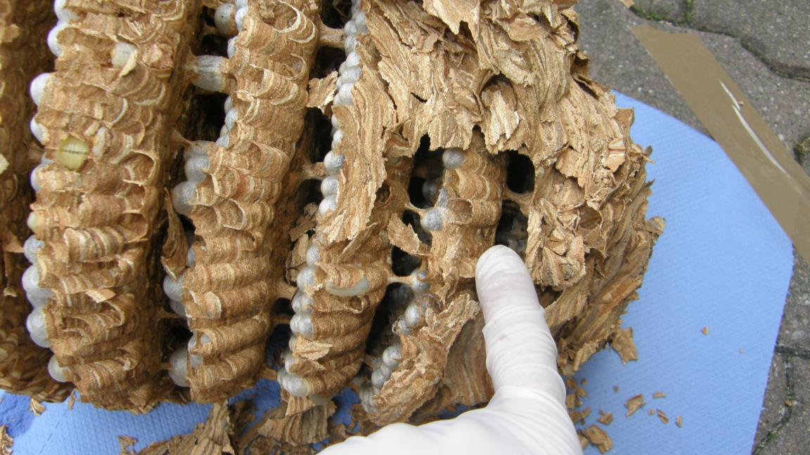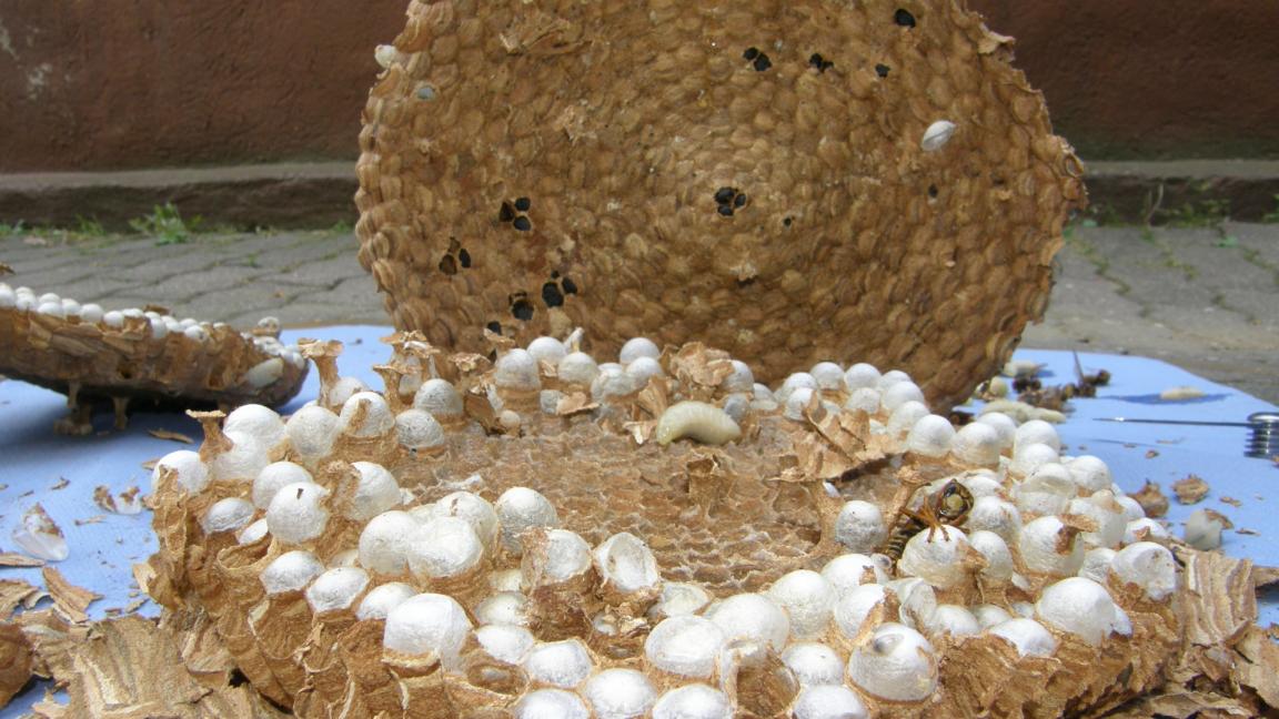 Stršljenovo gnijezdo koje je uklonjeno sa jučerašnje akcije uspješno je očuvano, očišćeno te napravljen lijep snimak svakog diska (kat), pregledane ličinke, adulti, te usporedbe i vidljive forme razvoja iz jaje u ličinke (larva) te iz nje u lutku ili odraslog insekta....